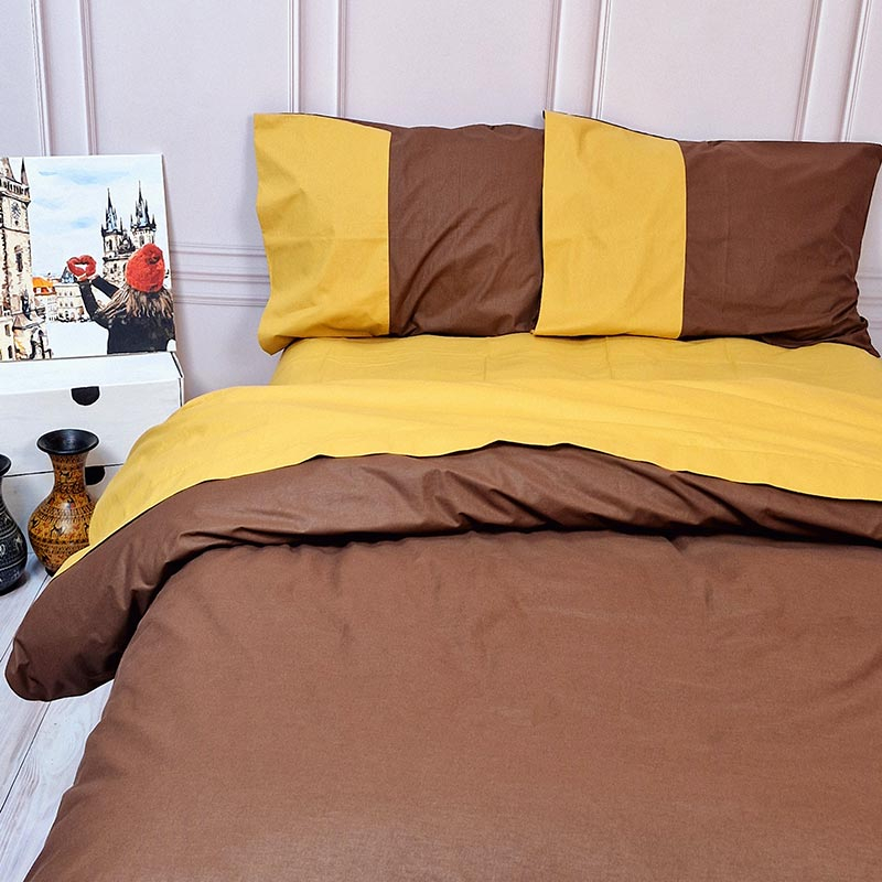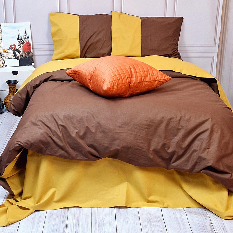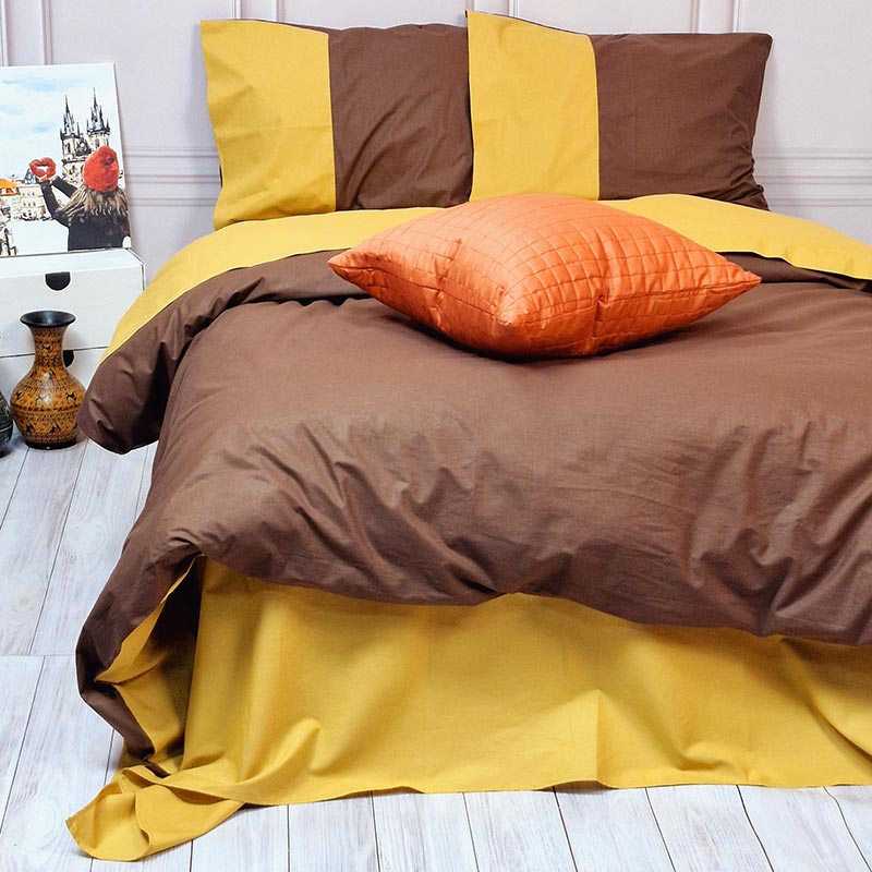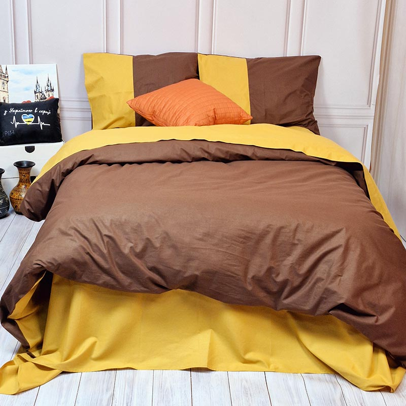 Постільна білизна PREMIERE Коричневий/Охра Ранфорс MERISET - Полуторний