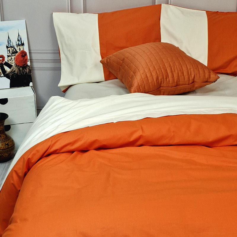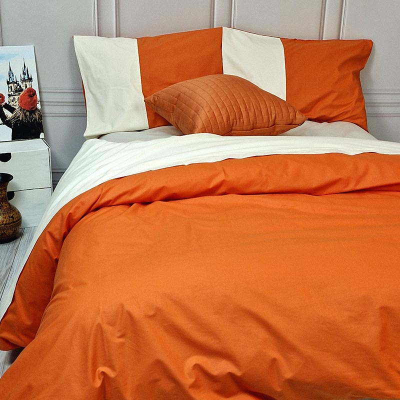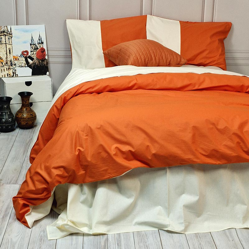 Постільна білизна PREMIERE Помаранчевий/Пломбірне морозиво Ранфорс MERISET - Полуторний