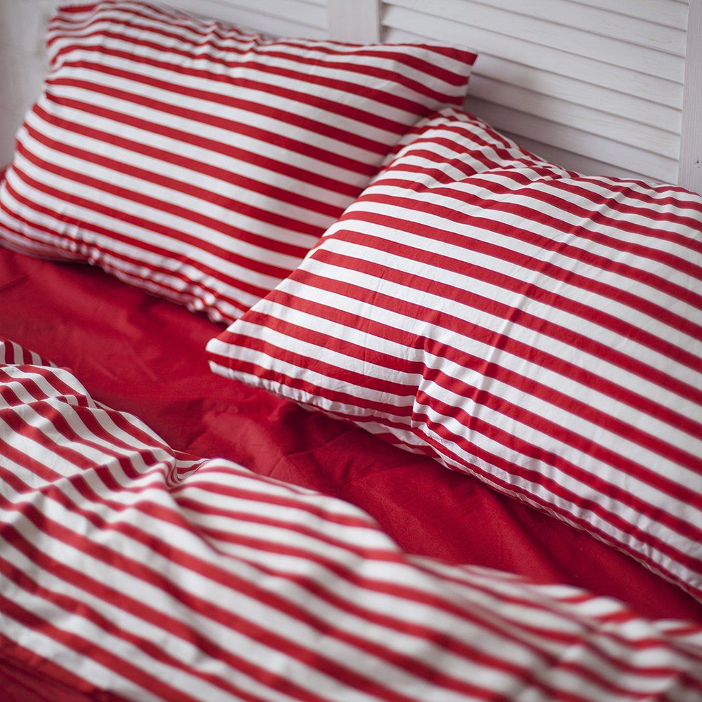 Постільна білизна Смугастий червоний Ранфорс MERISET - Полуторний