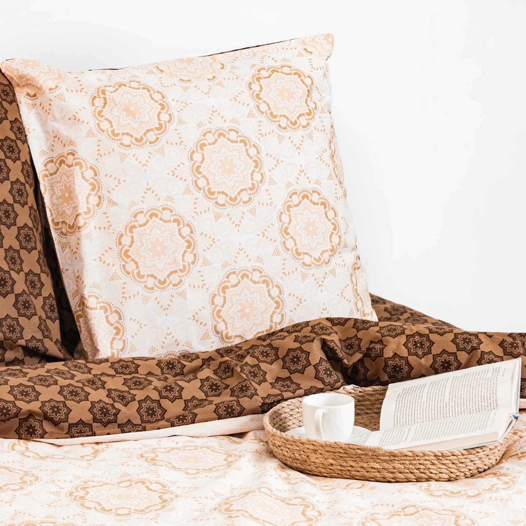 Матеріал та догляд:Щоб постіль довго прослужила, дотримуйтесь рекомендацій: Виперіть постіль перед першим використанням окремо від інших виробів при температурі 30°С. Надалі періть з подібними кольорами при температурі не більше 40°С, без відбілювачів.