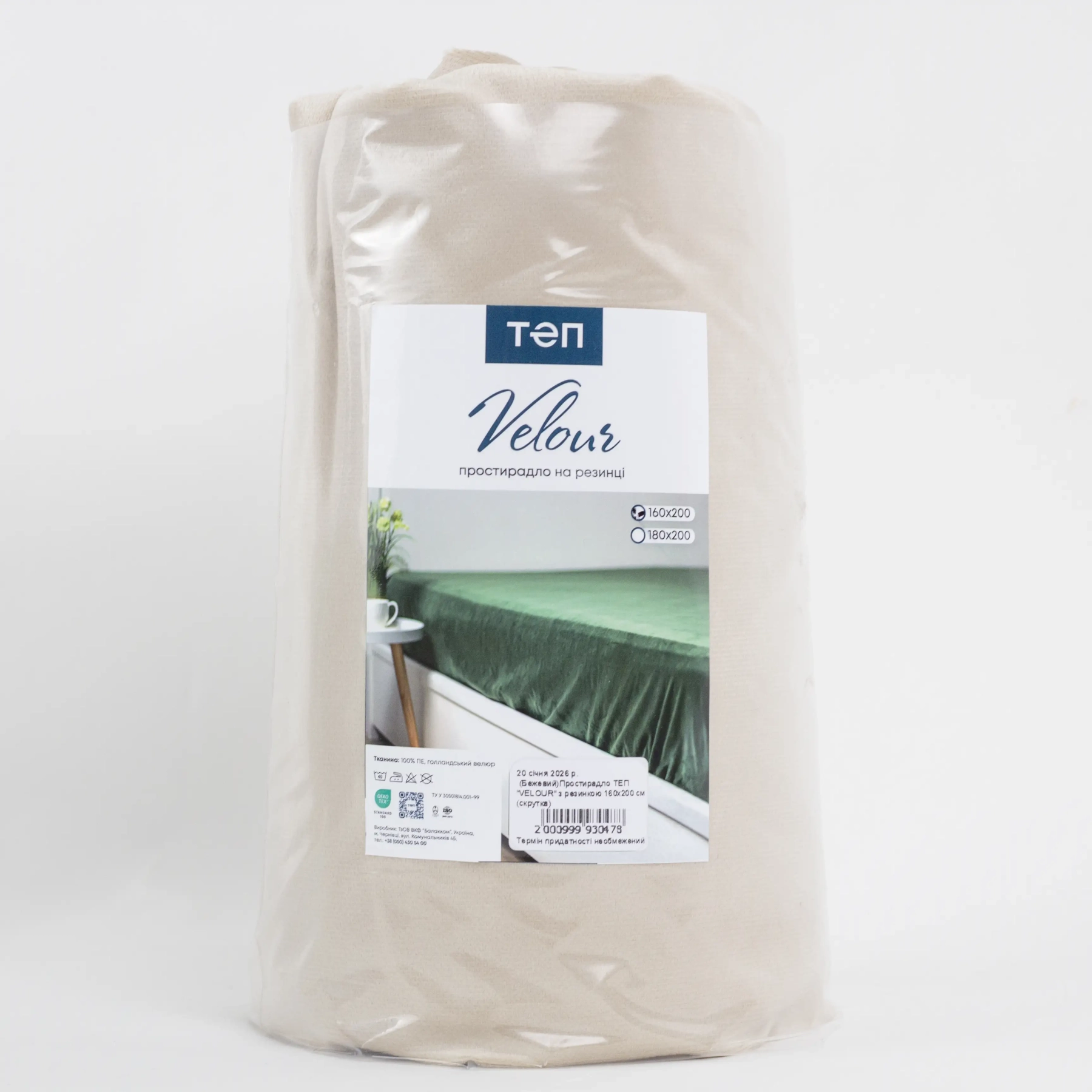 Простирадло ТЕП "VELOUR" з резинкою бежеве, 160x200