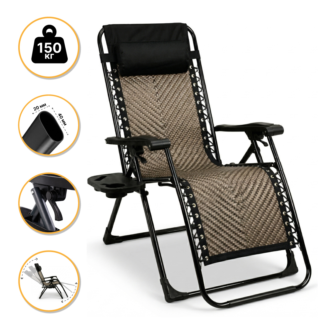 Розкладне крісло-шезлонг LEOBRO Zero Gravity Premium Rattan - це комфортне та надійне розкладне крісло-шезлонг, створене для справжнього відпочинку. Воно ідеально підходить для використання на свіжому повітрі — у саду, на терасі, біля басейну чи під час кемпінгу. Основні переваги: Ергономічна конструкція Zero Gravity — знімає навантаження зі спини та ніг, забезпечуючи максимальне розслаблення. Міцна сталева рама — квадратні трубки діаметром 40/25 мм і товщиною 1,0 мм з порошковим покриттям гарантують стійкість і довговічність. Сучасний дизайн — елегантно виглядає у будь-якому екстер’єрі. Регульований нахил спинки — легко налаштовується під зручний кут для відпочинку або сну.