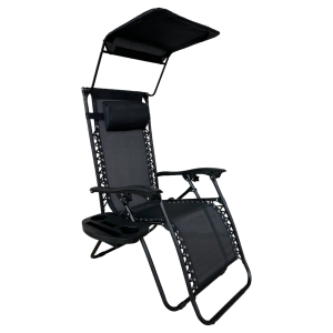 Розкладне крісло шезлонг Zero Gravity LEOBRO з козирком Чорне