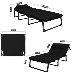 Розкладне ліжко (розкладачка) з матрацом і подушкою LEOBRO Black (LB-FB-A1-BLK)