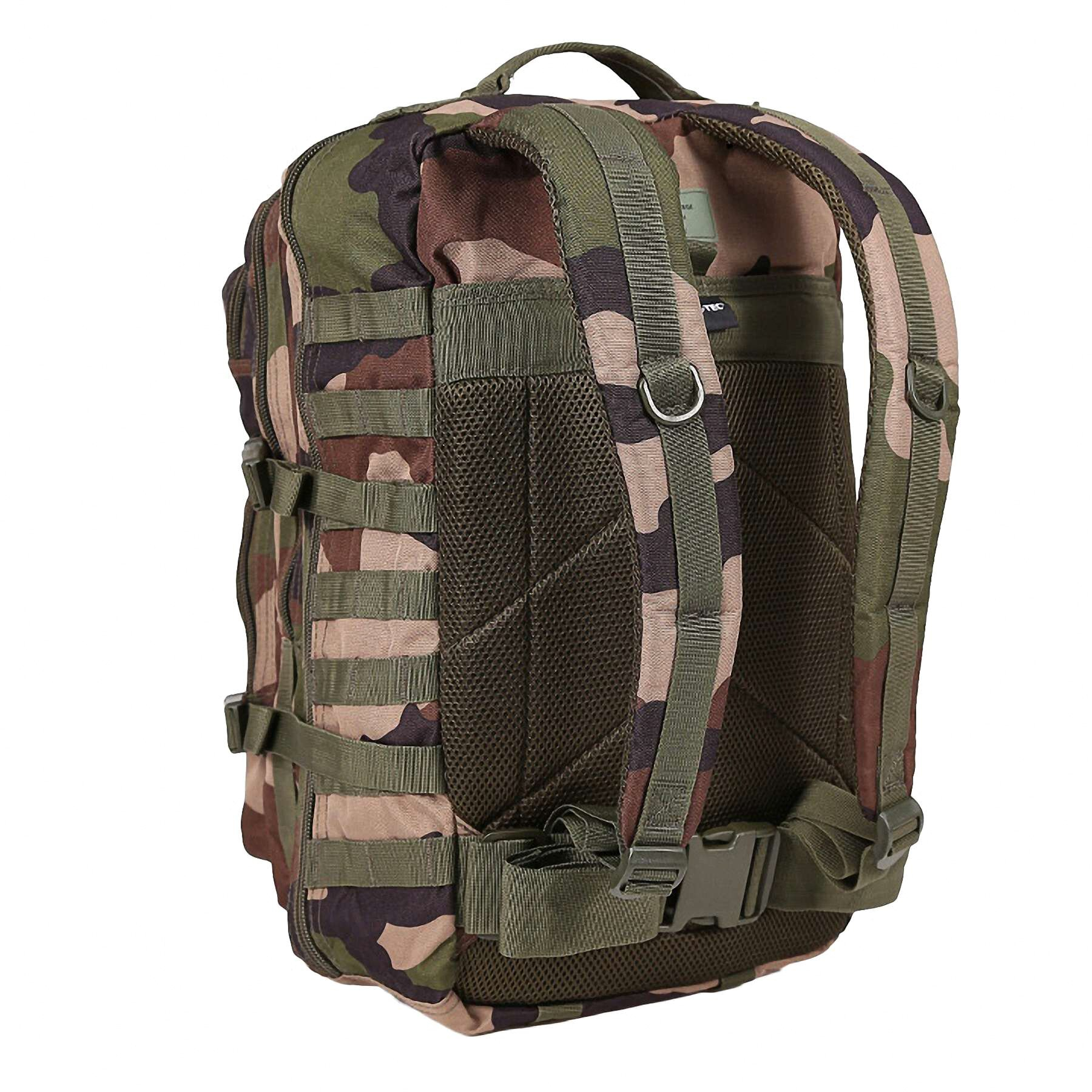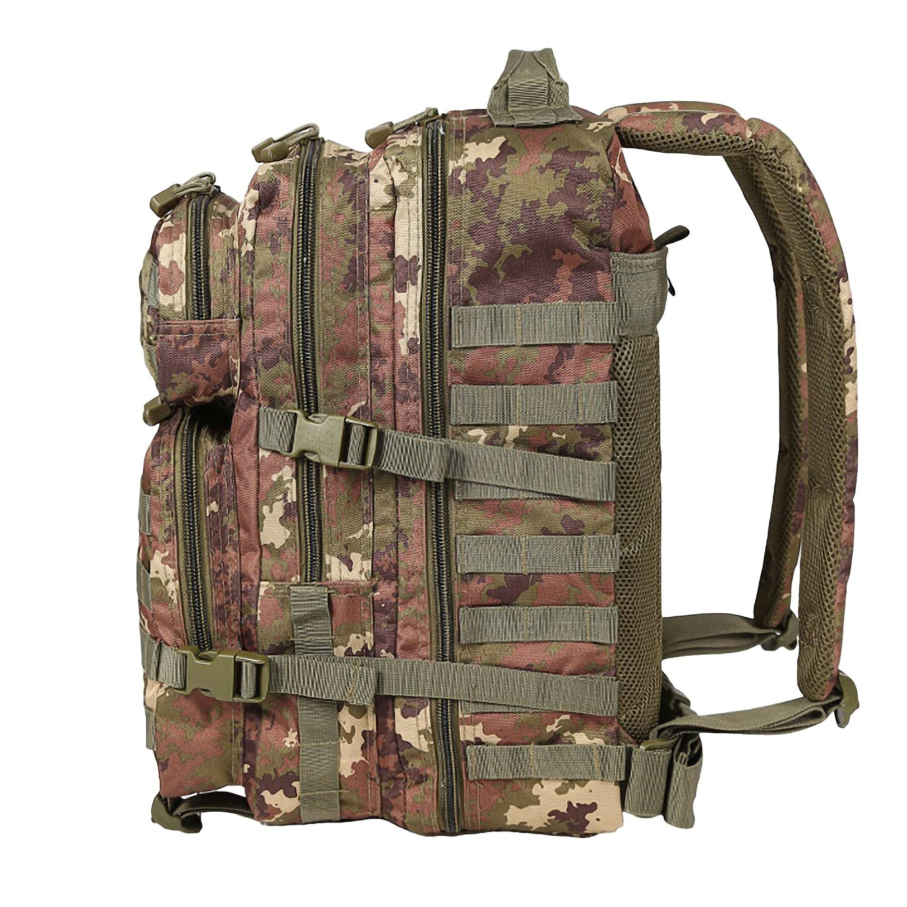 Рюкзак тактичний Mil-Tec Assault Pack Large 36 лРюкзак тактичний Mil-Tec Assault Pack Large 36 л – це універсальний штурмовий рюкзак від німецького бренду Mil-Tec, призначений для тактичних операцій, виживання, туристичних походів, полювання, риболовлі та повсякденного використання. Виготовлений із міцного 100% поліестеру з внутрішнім ПВХ-покриттям, рюкзак забезпечує водонепроникність і стійкість до зносу. Об’єм 36 літрів і габарити 51 x 29 x 28 см дозволяють зручно переносити спорядження для триденних походів або міських завдань.