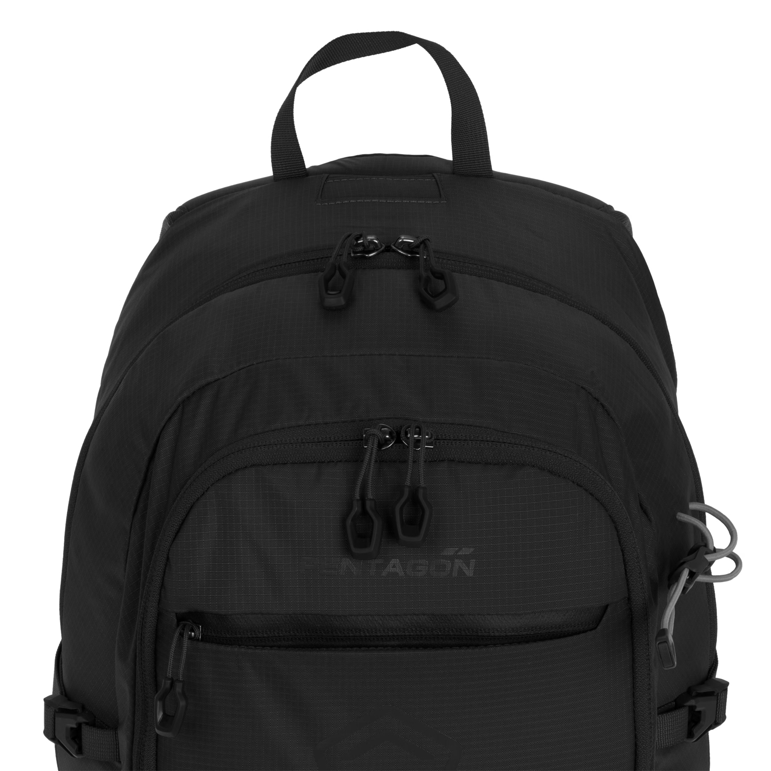 Рюкзак Pentagon Minor 28 лРюкзак Pentagon Minor 28 л – це компактний тактичний рюкзак від грецького бренду Pentagon, призначений для міських умов, одноденних походів, тактичних завдань і активного відпочинку. Виготовлений із перероблених матеріалів, сертифікованих Blue Sign, що підкреслює екологічність моделі. Основна тканина – міцний поліестер із водовідштовхувальним покриттям, який забезпечує захист від легкого дощу. Рюкзак оснащений пряжками Woojin, відомими своєю міцністю та довговічністю, що гарантує безпеку речей у будь-яких умовах. Ергономічний дизайн включає спеціальну раму для рівномірного розподілу ваги, зменшуючи навантаження на плечі та спину. Анатомічно сформована спинка з вентиляційними отворами та м’якими накладками забезпечує повітропроникність і комфорт під час тривалого носіння. У нижньому кишеньковому відсіку є захисний дощовик із водонепроникністю 3500 мм, який зберігає вміст сухим під час зливи. Рюкзак має кілька відділень, включно з основним із сітчастим кишенею на блискавці та фронтальним із двосторонньою блискавкою для швидкого доступу.
