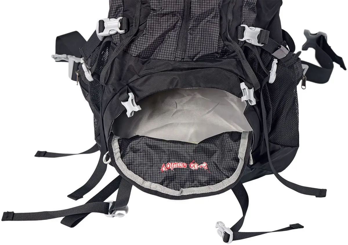 Рюкзак Skif Outdoor Highlander — це великий трекінговий рюкзак, створений для піших походів і подорожей. Виготовлений із міцного та зносостійкого нейлону, він гарантує довговічність навіть при інтенсивному використанні. Рюкзак має просторе основне відділення з відсіком для ноутбука чи книг, доступ до якого забезпечується через верхню кришку-клапан або фронтальний клапан на блискавці для швидкого доступу. Кришка-клапан оснащена зовнішньою кишенею на блискавці та внутрішньою сітчастою кишенею. Додатково є дві еластичні бічні кишені для термоса чи пляшки, дві кишені на поясі, а також горизонтальна та вертикальна кишені на фронтальній частині. Модель має отвір для трубки гідратаційної системи.