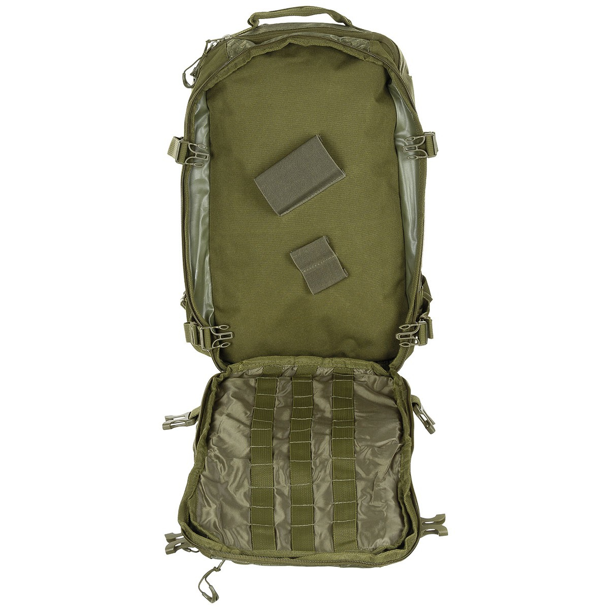 - Невелике основне відділення на двосторонній блискавці з петлями для кріплення MOLLE