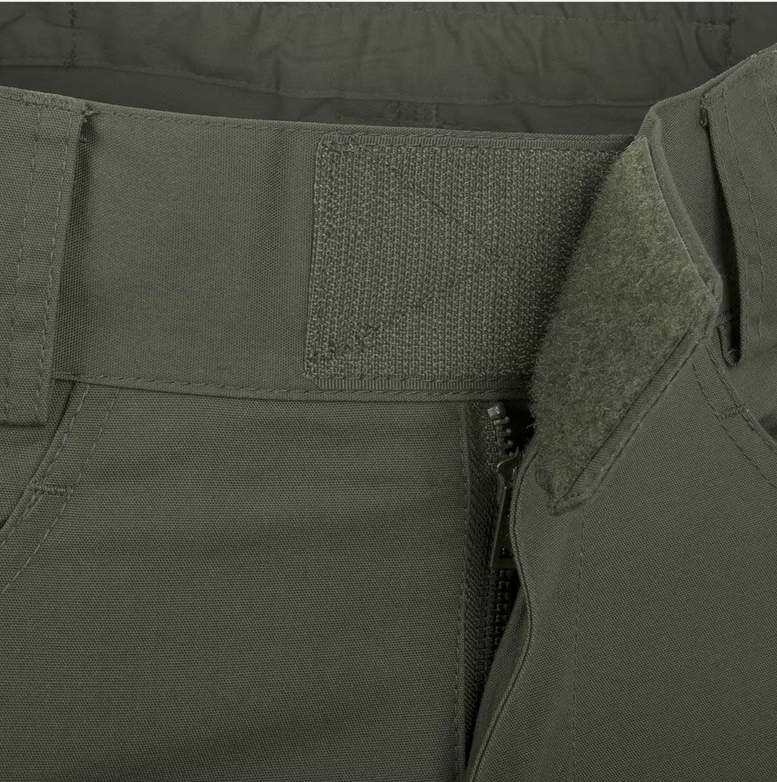 Штани Helikon Greyman Tactical DuraCanvas Taiga GreenШтани мають 9 кишень: дві класичні передні, дві менші передні, чотири задні та одну внутрішню в правій передній кишені. Еластичний пояс із застібкою на липучці регулюється по обхвату талії, а широкі петлі (до 50 мм) сумісні з тактичними ременями Helikon-Tex (EDC, UTL, Cobra). Посилення в зоні промежини додає міцності та комфорту під час руху. Блискавки YKK забезпечують надійність. Вага штанів — 448 г.