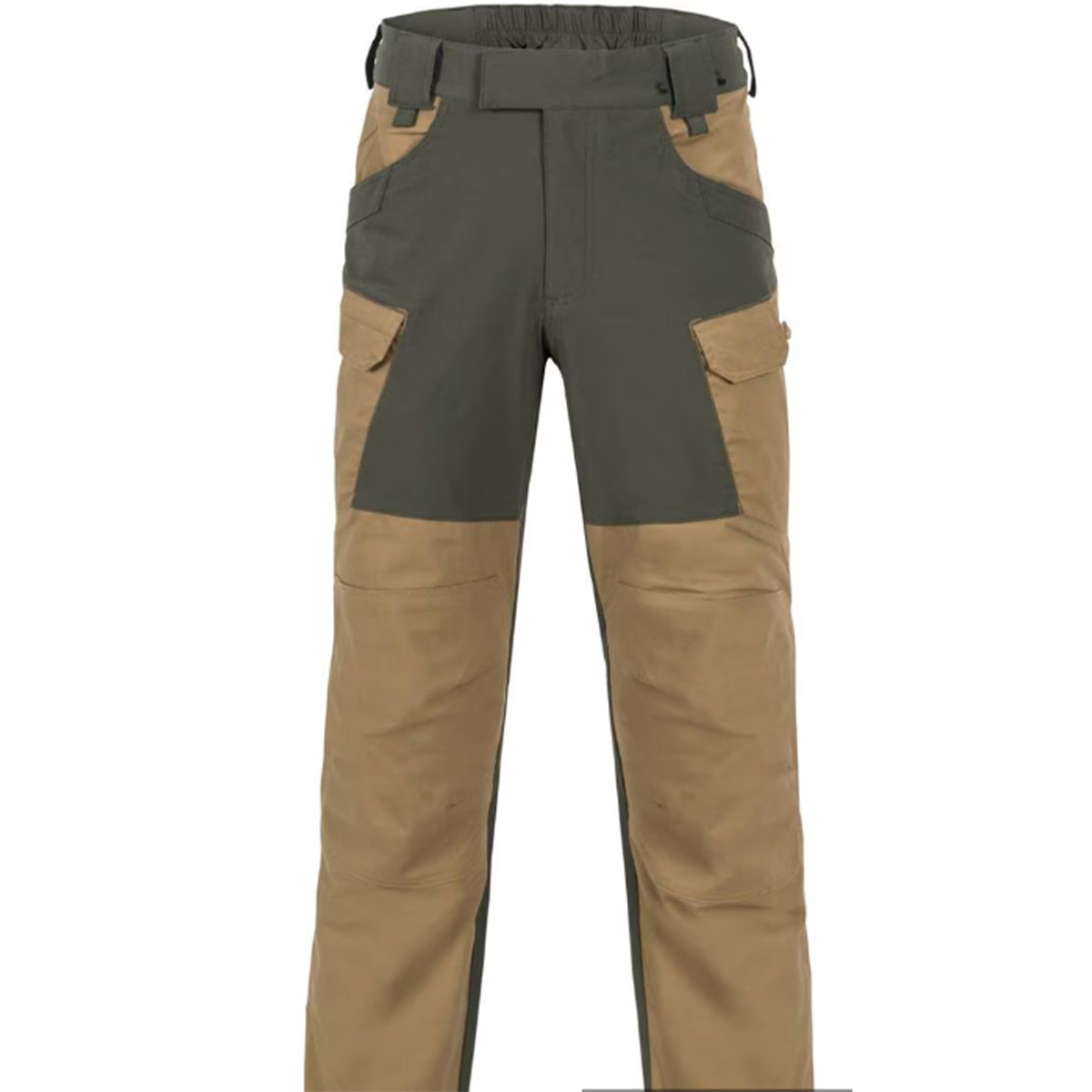 Штани Helikon-Tex Hybrid Outback DuraCanvas Taiga Green від польського бренду Helikon-Tex – це сучасні тактичні штани з лінійки OUTBACK, призначені для тривалих походів, активного відпочинку чи використання в міських умовах. Виготовлені з комбінації двох матеріалів: DuraCanvas® (65% поліестер, 33% бавовна, 2% еластан) для міцності та стійкості до зношування і VersaStretch® для еластичності та свободи рухів. Штани можна частково гідроізолювати за допомогою спеціального воску, що додає захист від легких опадів.