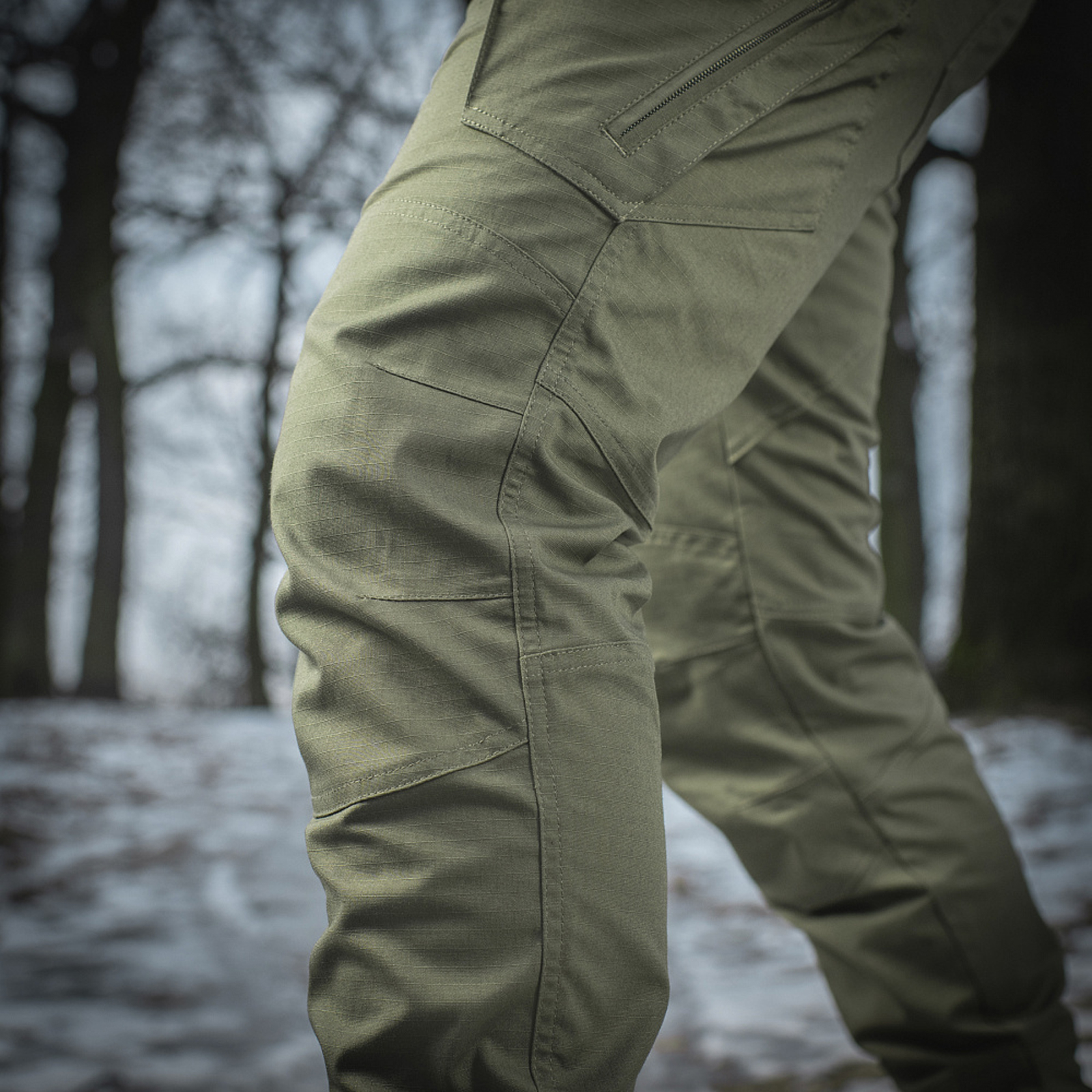 Штани M-Tac Aggressor Gen II Flex Army Olive від українського бренду M-Tac – це тактичні штани другого покоління з еластичними вставками, розроблені для тренувань, стрільби, роботи чи повсякденного використання в міських та польових умовах. Виготовлені з легкої монолітної Rip-Stop тканини (63% поліестер, 35% бавовна, 2% еластан) з Teflon-відштовхувальним покриттям від води та бруду, штани приємні до тіла, добре зберігають колір і витримують знос. Ергономічний крій з еластичними панелями забезпечує свободу рухів, а посилені кишені (до 5,5 см шириною) з D-кільцями для кріплення спорядження додають практичності. Регульований пояс, широкі петлі для ременя (до 5,5 см), блискавки та ґудзики YKK, а також два бокових карго-кишені з додатковим посиленням роблять штани універсальними для активного способу життя. Колір Army Olive ідеально маскує в природному середовищі, підходячи для тактичних завдань.
