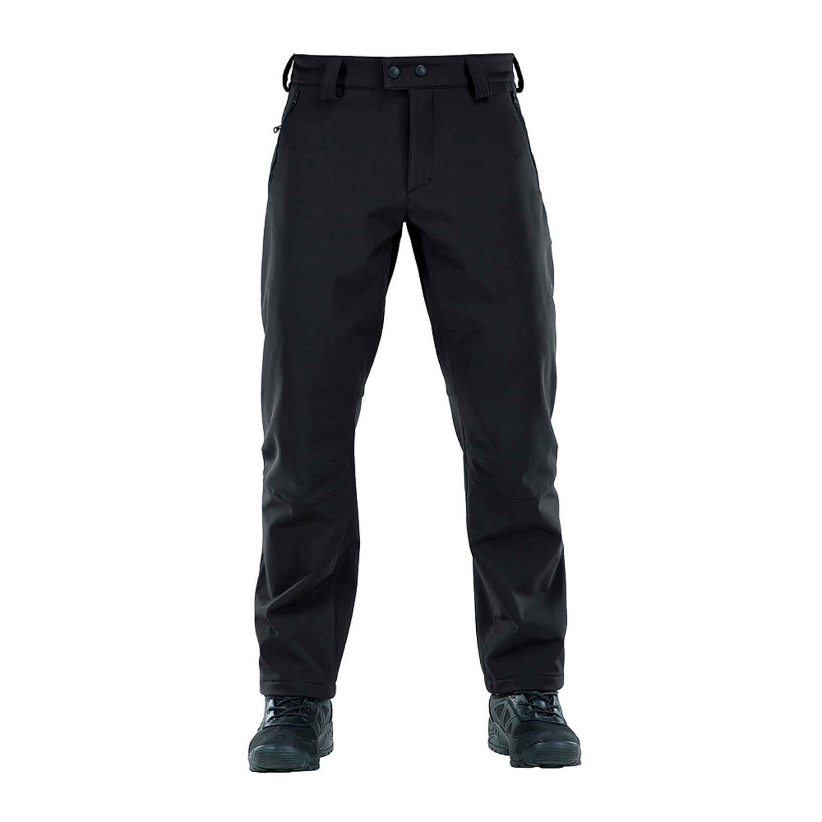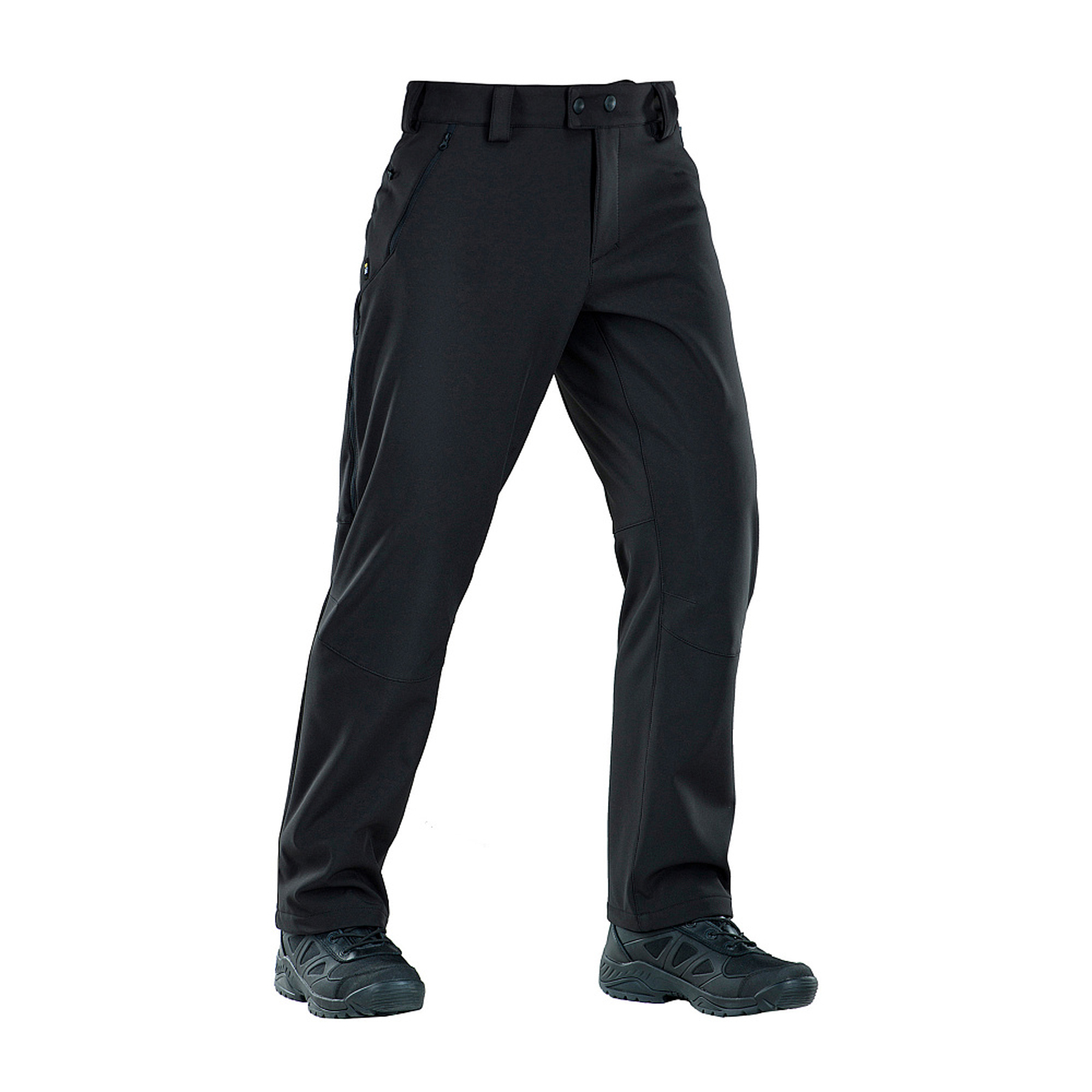 Штани M-Tac Soft Shell Winter Black від українського бренду M-Tac – це утеплені тактичні штани для зимового та осіннього періоду, ідеальні для тактичних операцій, полювання, туризму чи outdoor-активностей у холодну погоду. Виготовлені з тришарової мембрани Soft Shell (100% поліестер), що забезпечує захист від вітру, снігу, легкого дощу та холоду, штани оснащені флісовою підкладкою для додаткового тепла та комфорту без зайвої ваги. Легкі та мобільні, вони не сковують рухів, а водовідштовхувальна поверхня зберігає сухість. Високий пояс з еластичними вставками та розширеною задньою частиною захищає від продування, регульовані шнури на низу штанин фіксують посадку, а широкі петлі для пояса додають універсальності. Шість кишень (дві бокові, дві карго з блискавками та дві задні) дозволяють зручно розмістити спорядження. Чорний колір робить штани практичними для міських чи польових умов, підходячи для тривалих місій.