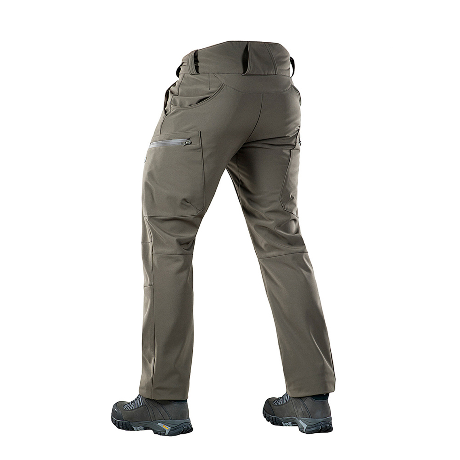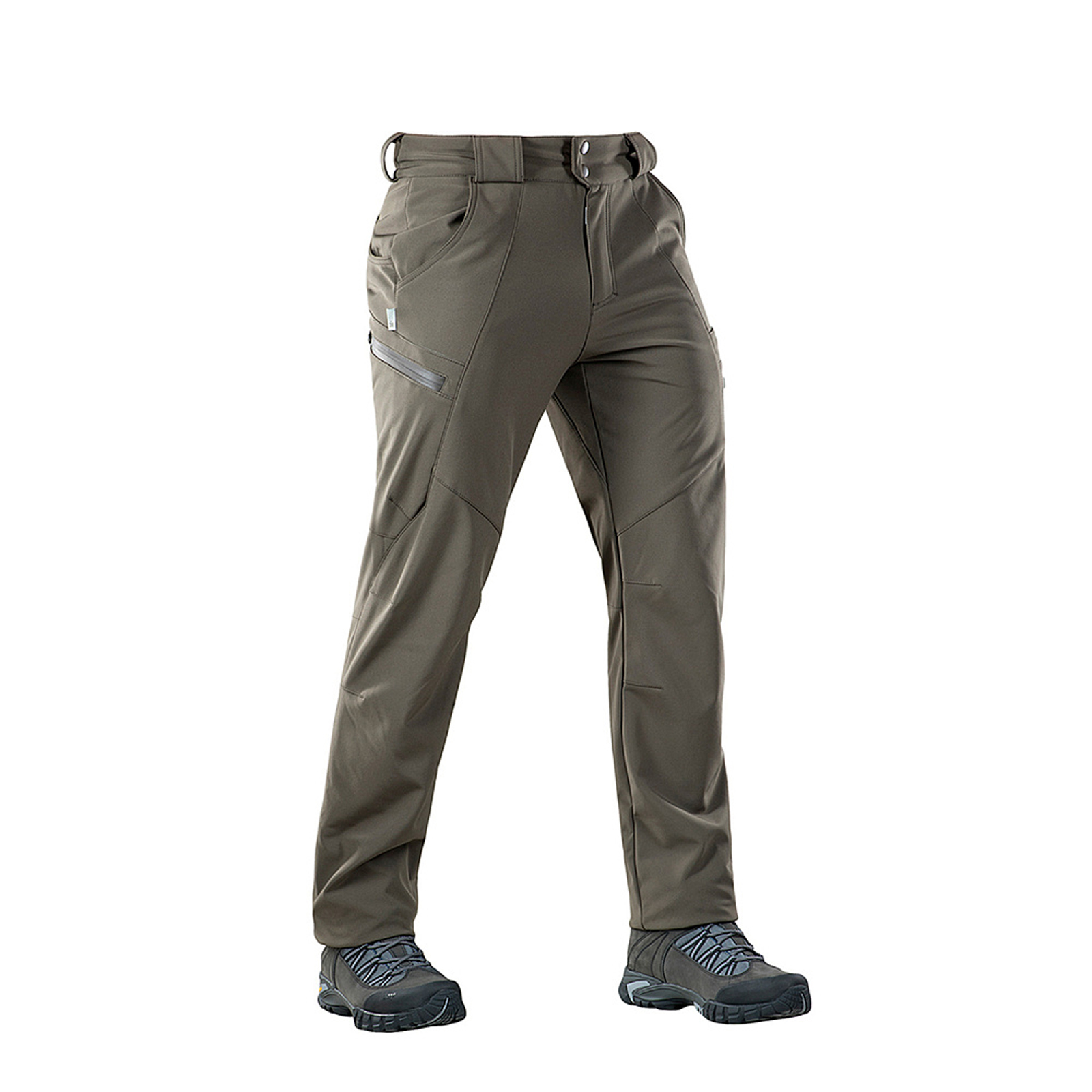 Штани M-Tac Soft Shell Winter Olive від українського бренду M-Tac – це утеплені тактичні штани для зимового та осіннього періоду, ідеальні для тактичних операцій, полювання, туризму чи outdoor-активностей у холодну погоду. Виготовлені з тришарової мембрани Soft Shell (100% поліестер), що забезпечує захист від вітру, снігу, легкого дощу та холоду, штани оснащені флісовою підкладкою для додаткового тепла та комфорту без зайвої ваги. Легкі та мобільні, вони не сковують рухів, а водовідштовхувальна поверхня зберігає сухість. Високий пояс з еластичними вставками та розширеною задньою частиною захищає від продування, регульовані шнури на низу штанин фіксують посадку, а широкі петлі для пояса додають універсальності. Шість кишень (дві бокові, дві карго з блискавками та дві задні) дозволяють зручно розмістити спорядження. Колір Olive робить штани практичними для природних умов, підходячи для тривалих місій.