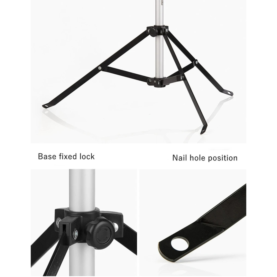Висоту штатива можна регулювати на власний розсуд в межах 75-194 см. Щоб встановити потрібну висоту, достатньо закрутити фіксатор. Діаметр алюмінієвих труб становить 25 / 22 / 19 / 16 мм.