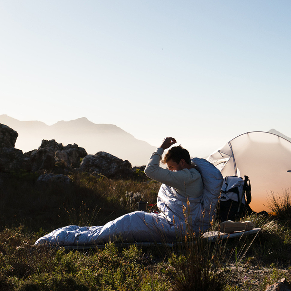 У пошитті використано нейлон 20D, з якого виготовлений зовнішній та внутрішній шари виробу. Матеріал демонструє стійкість на розрив та ефективно відштовхує вологу, запобігаючи намоканню відпочивальника у разі випадання конденсату всередині намету. Щільне переплетення синтетичних волокон також захищає від холодних протягів.