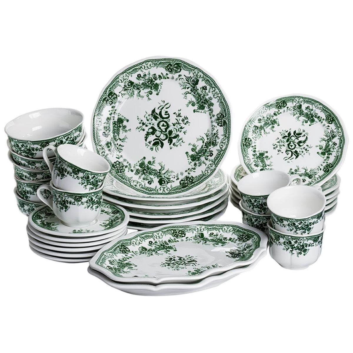 Столовий набір посуду 32 предмети на 6 осіб Vintage Elegant порцеляновий Зелений YY78-7A