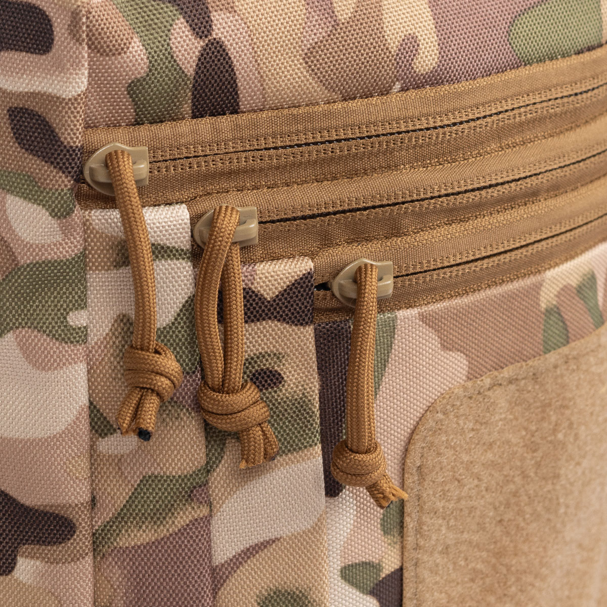 Особливості:- Матеріал: зазвичай виготовляється з міцних та зносостійких матеріалів, таких як Cordura або нейлон. Ці матеріали мають водовідштовхувальні властивості та стійкі до стирання, що забезпечує довговічність сумки.