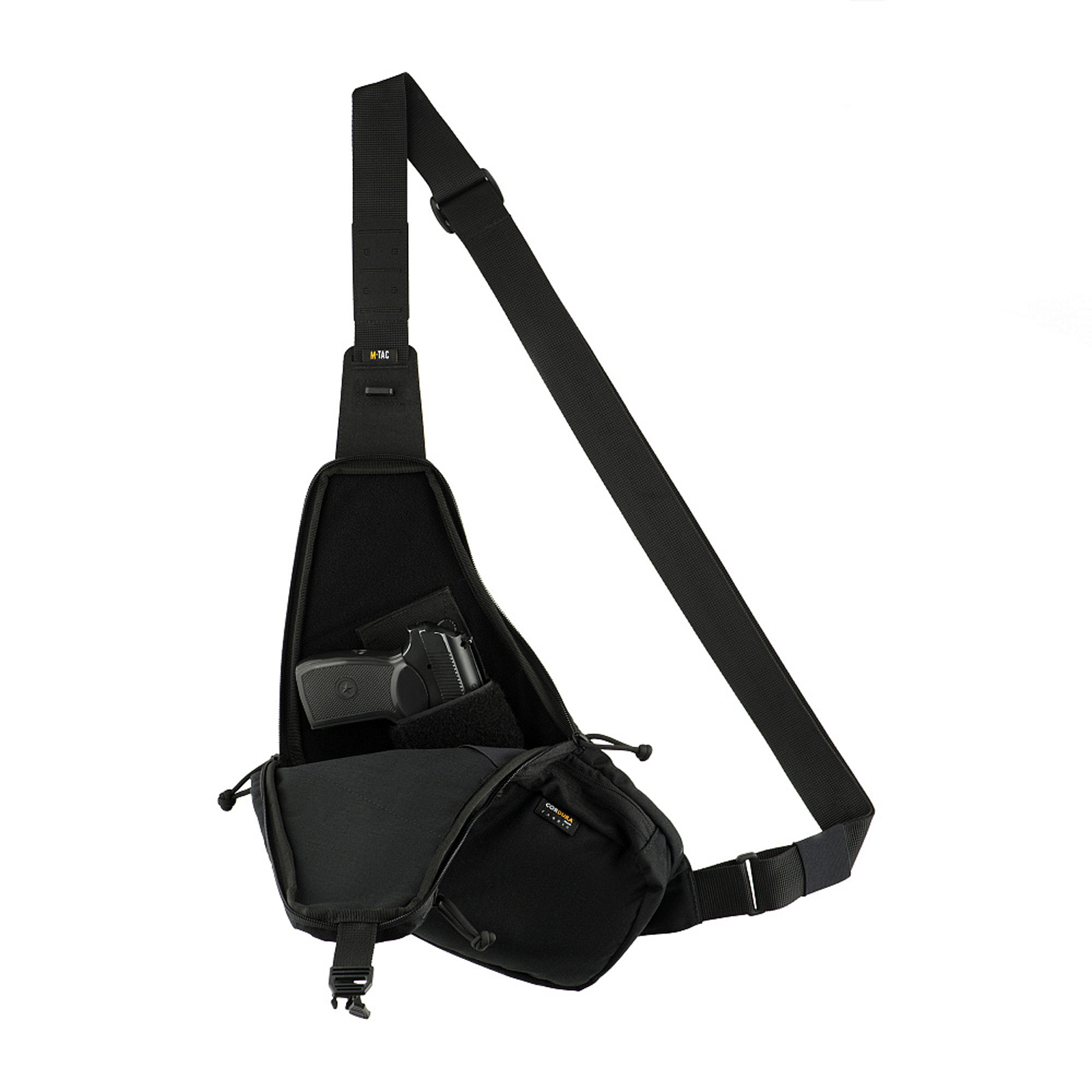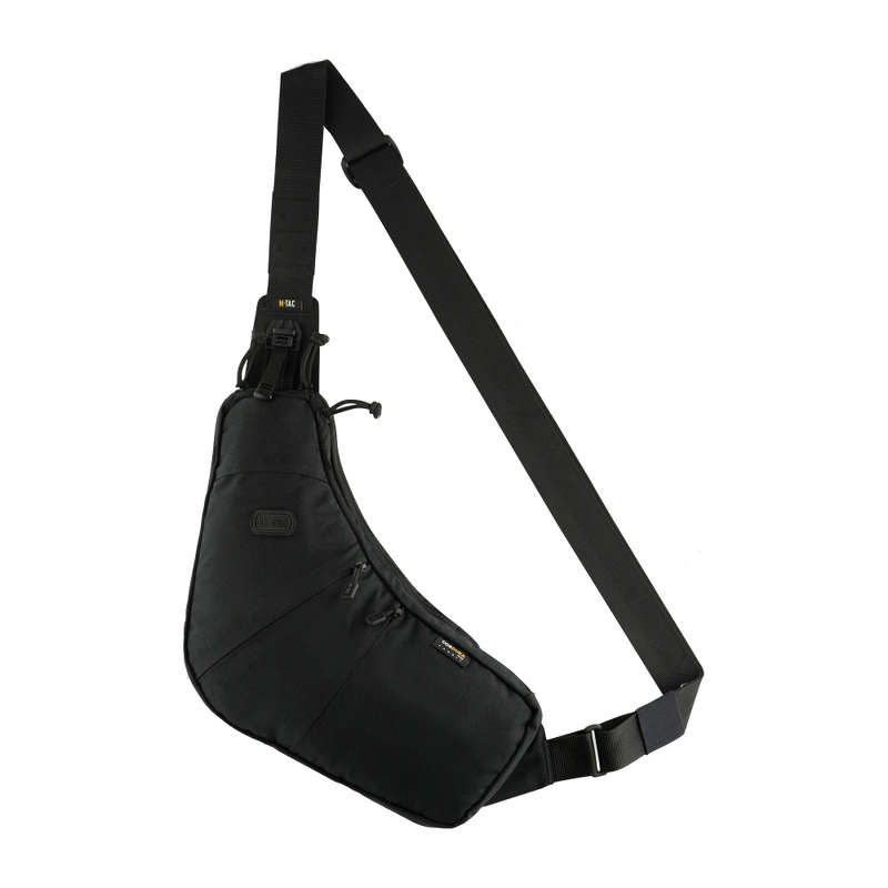Сумка M-Tac Bat Wing Bag Elite Black від українського бренду M-Tac – це компактна та функціональна слінг-сумка з оригінальним дизайном, розроблена для прихованого носіння зброї, EDC (щоденного носіння) чи тактичних операцій, туризму чи outdoor-активностей. Виготовлена з міцної тканини Cordura 500D та Hex 1000D, стійкої до зносу та легкої в догляді, сумка має асиметричну форму для комфортної посадки на тілі без зайвого об'єму. М'яка сітчаста панель на спині забезпечує вентиляцію та комфорт, а основний відсік з модульними вставками на Velcro, сітчастою кишенею та органайзером з еластичними слотами зручно розміщує ключі, гаманець, документи, телефон чи приховану зброю (сумісна з кобурними вставками). Фронтальна кишеня на водонепроникній блискавці YKK та Velcro-панель з гексагональним логотипом додають універсальності, а регульований ремінь з швидкознімною пряжкою дозволяє носити як слінг чи поясну. Чорний колір робить сумку практичною для міських чи низькопрофільних завдань.