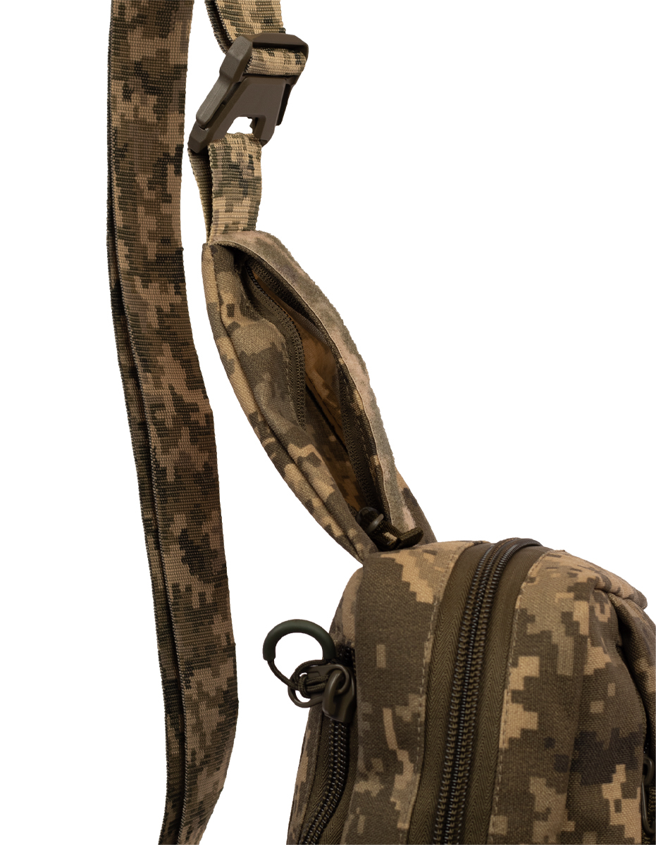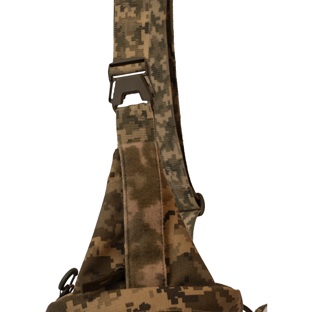 Шукаєте зручну та функціональну сумку для щоденного використання? Сумка-рюкзак "Sling" - це ідеальне рішення для вас! Містка (6 літрів) та міцна, вона стане вашим незамінним помічником у місті, на прогулянці, в подорожі або навіть під час виконання тактичних завдань.