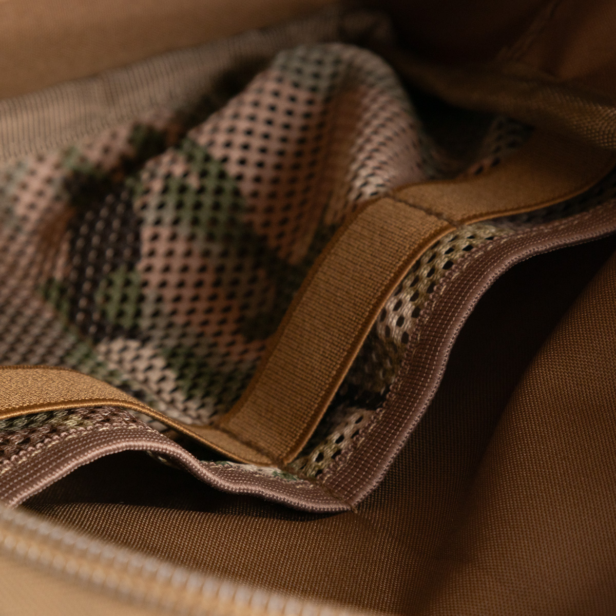 - Організація: У головному відділенні є кишеня з фіксатором для планшета, захисного балістичного пакета, блокнота чи документів, а також дві менші кишені з сітки та резинки для дрібниць.
