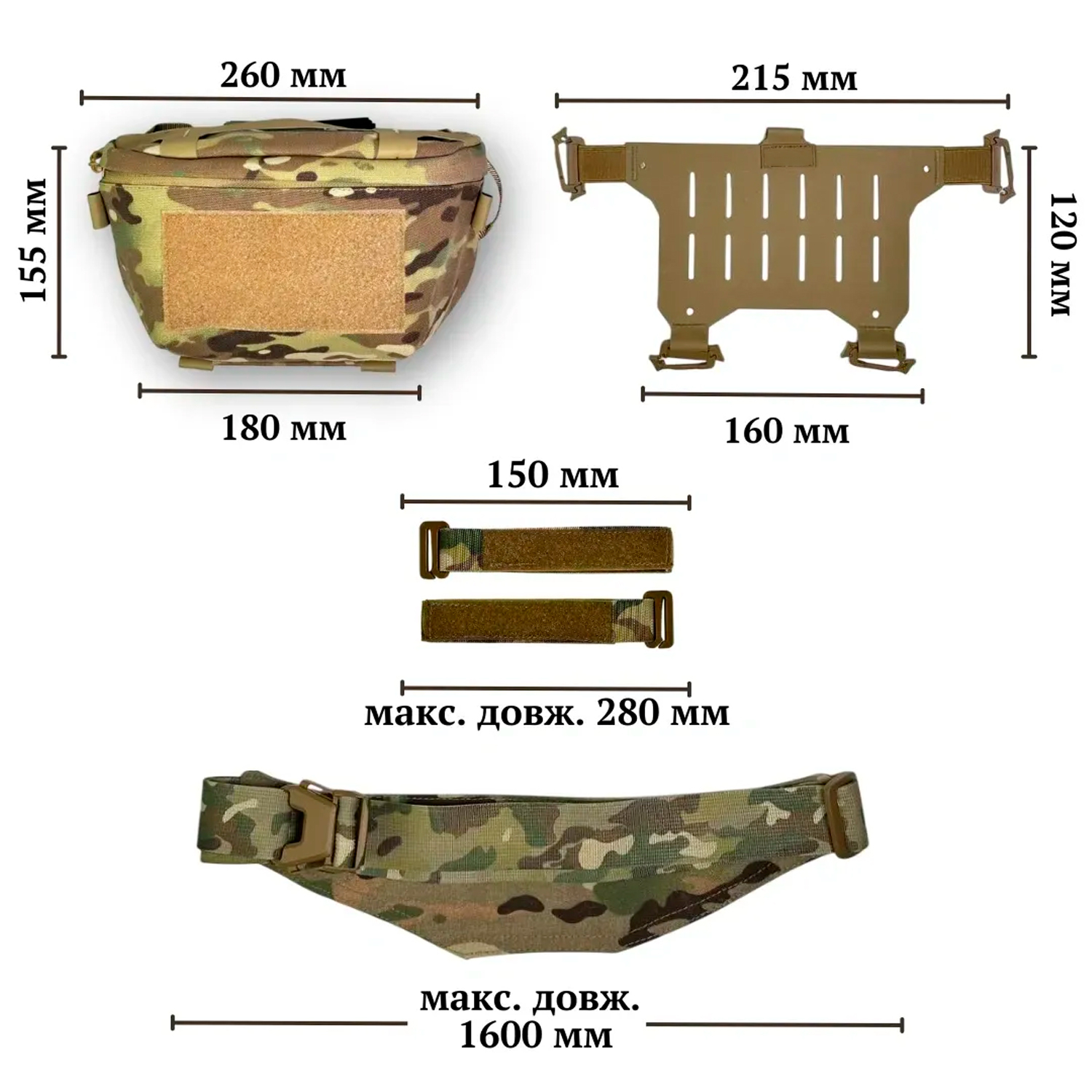 - Особливості: MOLLE-панель lasercut, велкро-панель, два відділення, кишеня для турнікета
