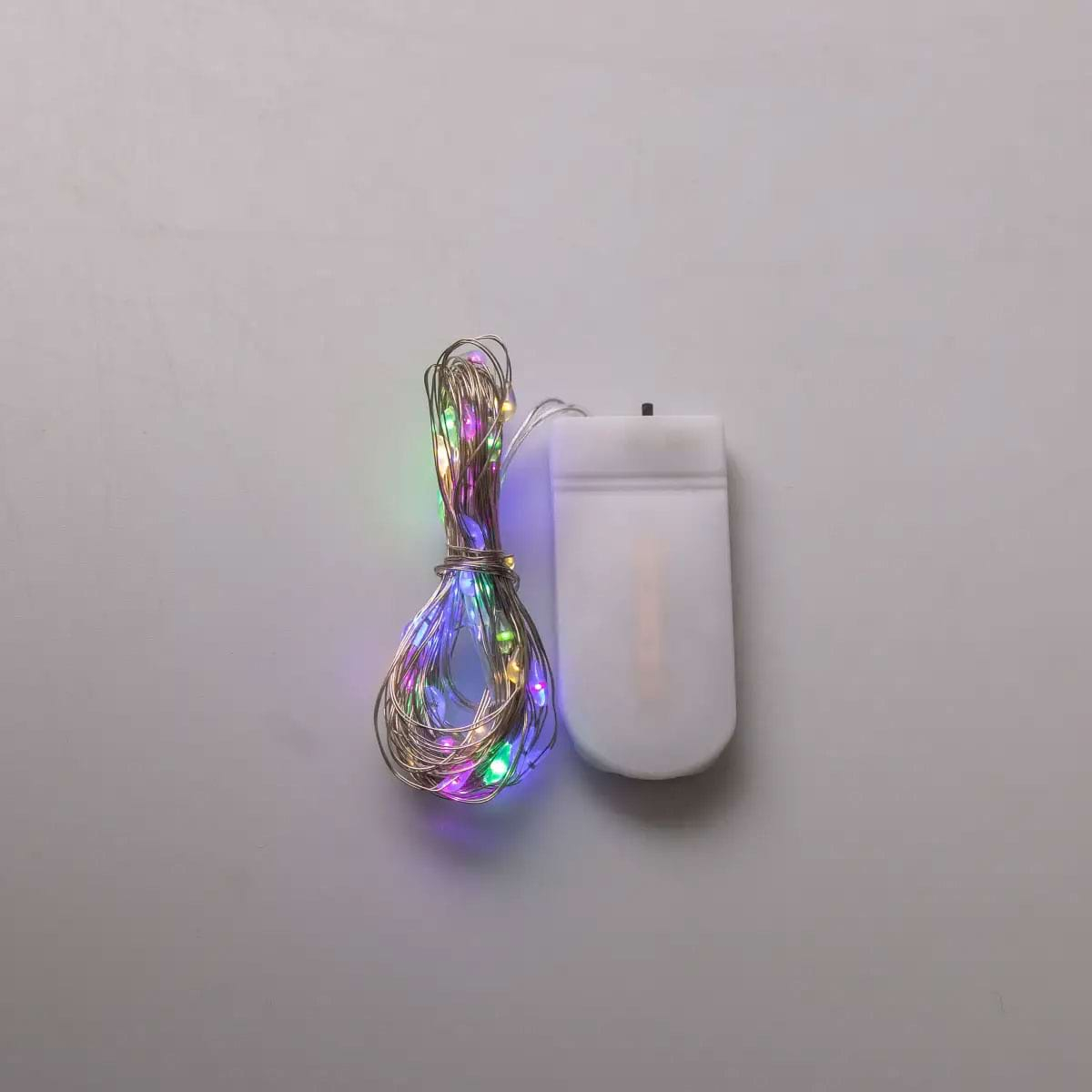 Світлодіодна гірлянда Роса 5 метрів на батарейках 50 led нитка на білому дроті мультиколор 50L5MWML