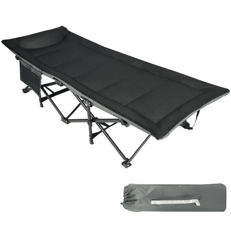 Міцна конструкція: металевий каркас гарантує довговічність і стійкість.Міцна конструкція:Компактність: у складеному вигляді займає мінімум місця та зручна для транспортування.Компактність:Легкість: невелика вага дозволяє легко переносити розкладачку.Легкість:Комфортне спальне місце: підходить для повноцінного відпочинку поза домом.Комфортне спальне місце:Матеріали: зносостійке полотно, стійке до навантажень і зовнішніх умов.Матеріали:Переваги: